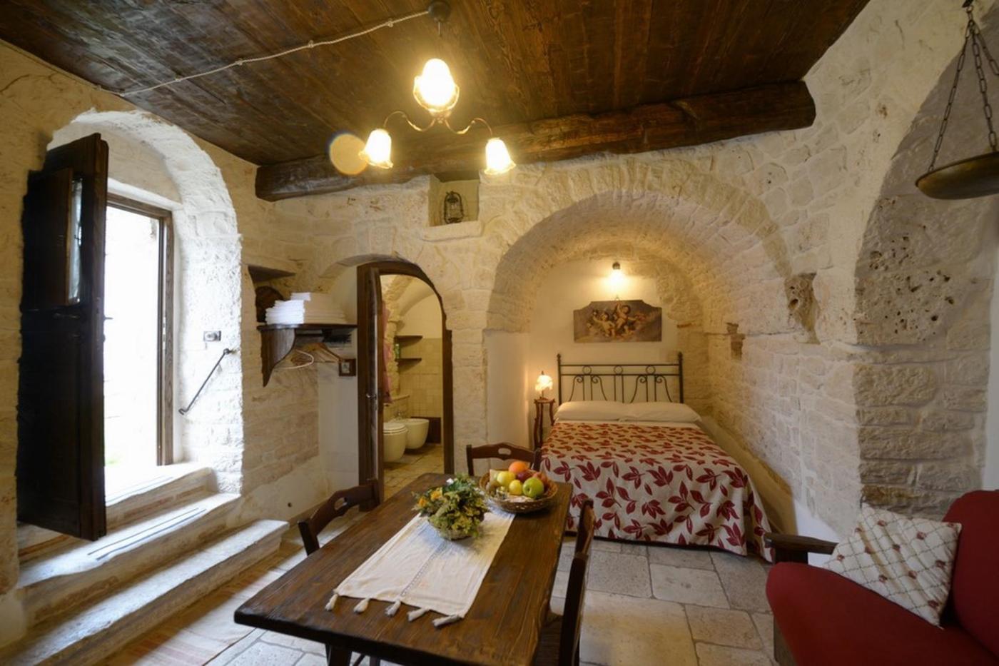Tutte le sistemazioni dispongono di aria condizionata, TV e minibar. Alcune includono un piccolo angolo cottura. Alcuni trulli sono inoltre circondati da un giardino fiorito, possiedono un patio privato e sono coperti da un tetto conico, mentre i monolocali sono provvisti soffitti a volta.