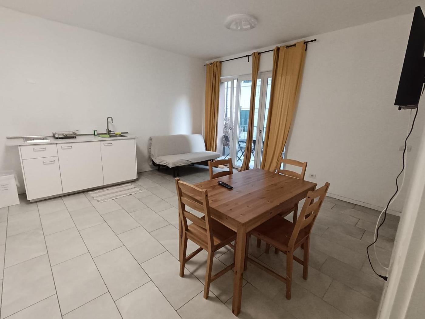 Appartamento - Piano Terra. Appartamento climatizzato e dotato di 1 soggiorno, 1 camera da letto separata e 1 bagno con doccia. Potrete preparare i pasti nella cucina, dotata di frigorifero, piano cottura e utensili. Dotato di balcone con vista sulla città , l’appartamento comprende una macchina da caffè e una TV a schermo piatto. Lunità presenta 3 letti. ;
