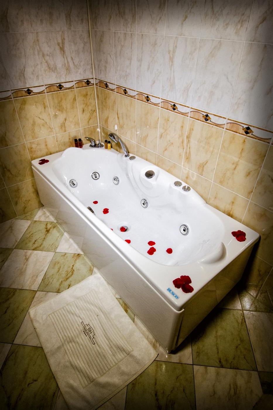 Camera King con Vasca Idromassaggio. Questa spaziosa camera matrimoniale dispone di aria condizionata, pareti insonorizzate, balcone con vista sul giardino e bagno privato con vasca. L’alloggio presenta 1 letto. ;