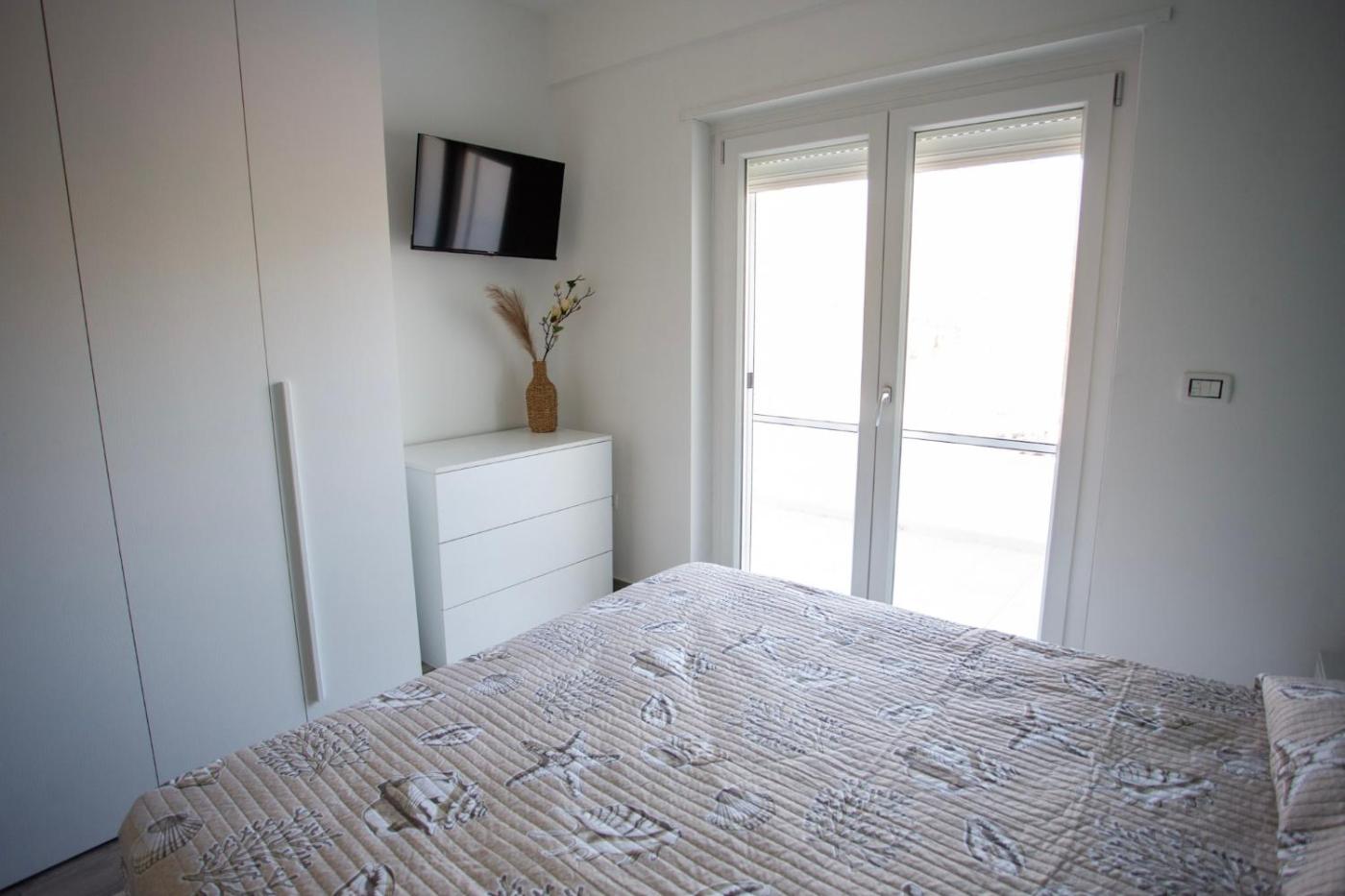 Appartamento con 1 Camera da Letto. This air-conditioned apartment comprises 1 living room, 1 separate bedroom and 1 bathroom with a shower. Guests can make meals in the kitchen that comes with a stovetop, a refrigerator, a dishwasher and kitchenware. Featuring a balcony with sea views, this apartment also provides a washing machine and a flat-screen TV. The unit offers 2 beds.