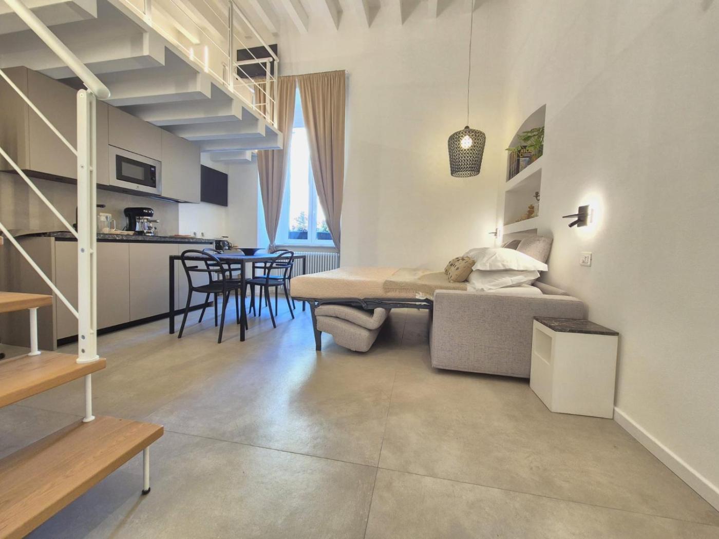 Monolocale su 2 Livelli. Offering free toiletries, this studio includes a private bathroom with a shower, a bidet and a hairdryer. Guests can make meals in the kitchen that is fitted with a stovetop, a refrigerator, a dishwasher and kitchenware. This studio is air-conditioned and features a seating area with a flat-screen TV, a washing machine, a private entrance, soundproof walls, as well as a tea and coffee maker. The unit offers 2 beds.