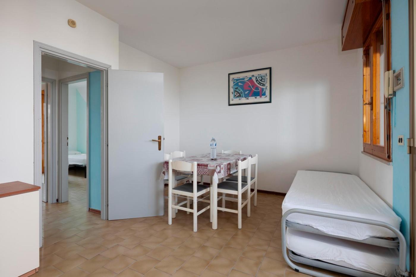 Appartamento con 2 Camere da Letto. Questo appartamento comprende un soggiorno, 2 camere da letto separate e 1 bagno con doccia e bidet. La cucina è ben attrezzata con piano cottura, frigorifero, utensili e forno. La sistemazione è dotata di macchina da caffè, area salotto, zona pranzo e terrazza affacciata sul mare. L’alloggio dispone di 4 letti.