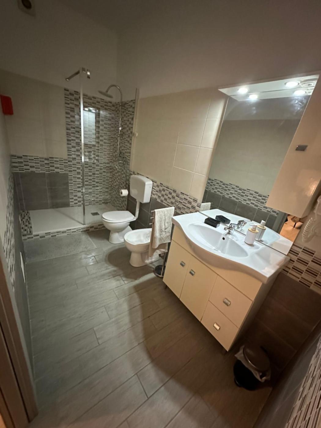 Camera King Deluxe. Offering free toiletries, this double room includes a private bathroom with a shower, a bidet and a hairdryer. The spacious air-conditioned double room offers a flat-screen TV with streaming services, soundproof walls, a minibar, a tea and coffee maker as well as city views.