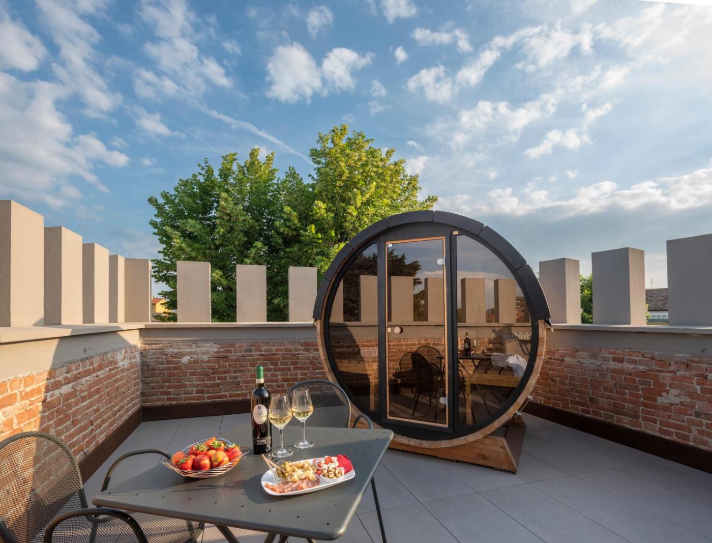 Camera Matrimoniale con Terrazza. This double room features a sauna. This air-conditioned double room is comprised of a flat-screen TV with streaming services, a private bathroom as well as a terrace. The unit has 1 bed. ;