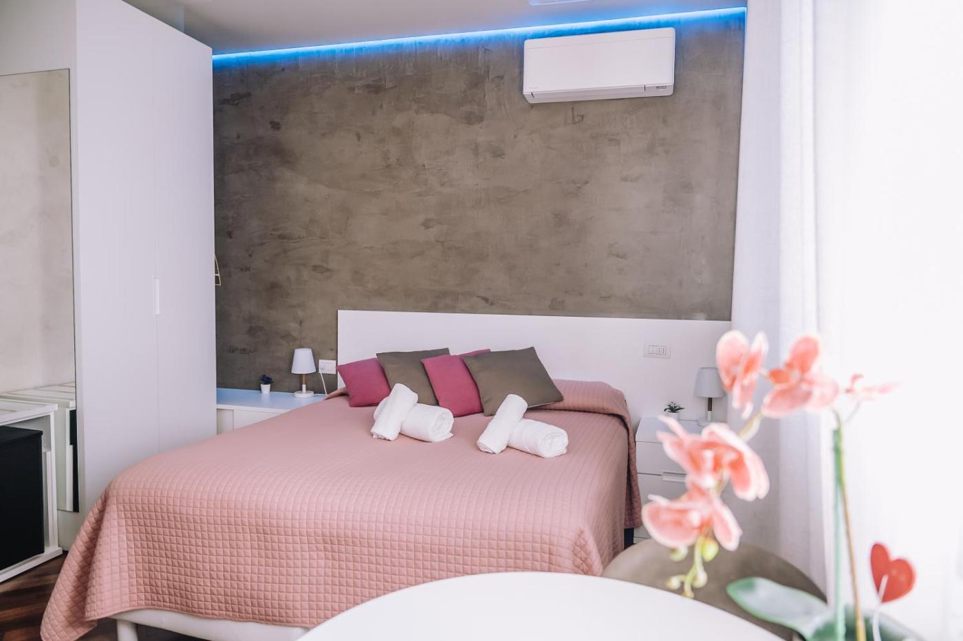 Camera Matrimoniale. Camera matrimoniale dotata di bagno privato con doccia, bidet, asciugacapelli edi cortesia. Dispone di aria condizionata, TV a schermo piatto con canali satellitari, ingresso indipendente, minibar e armadio. Presenta 1 letto. ;